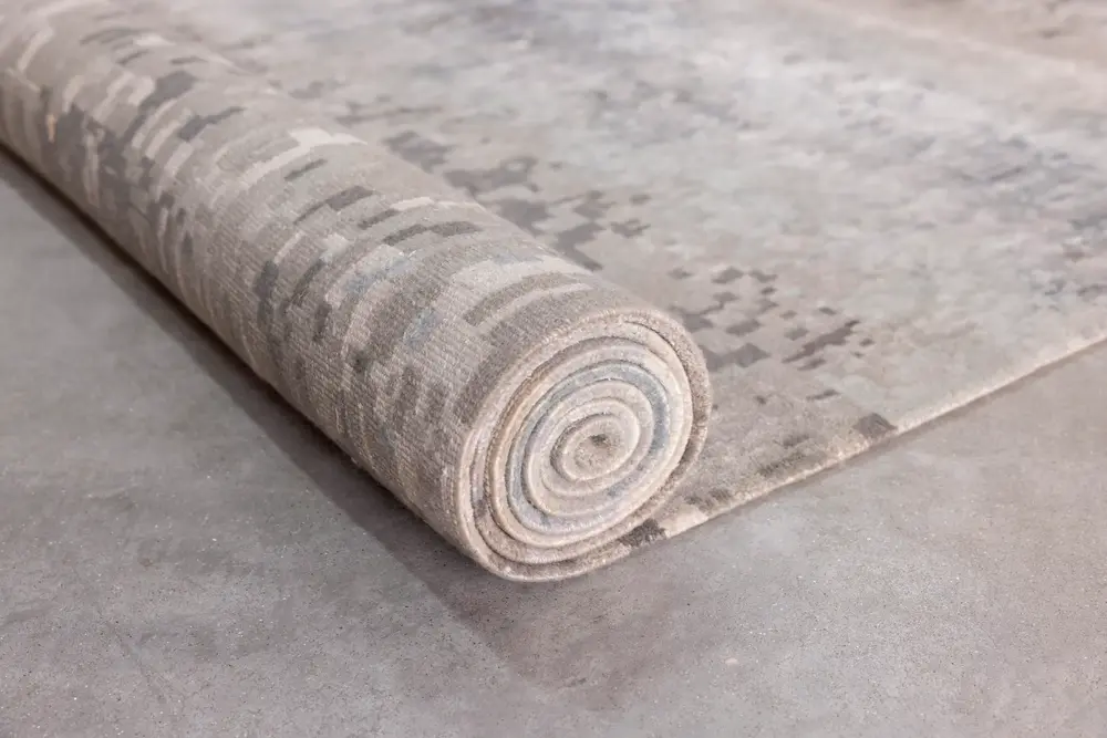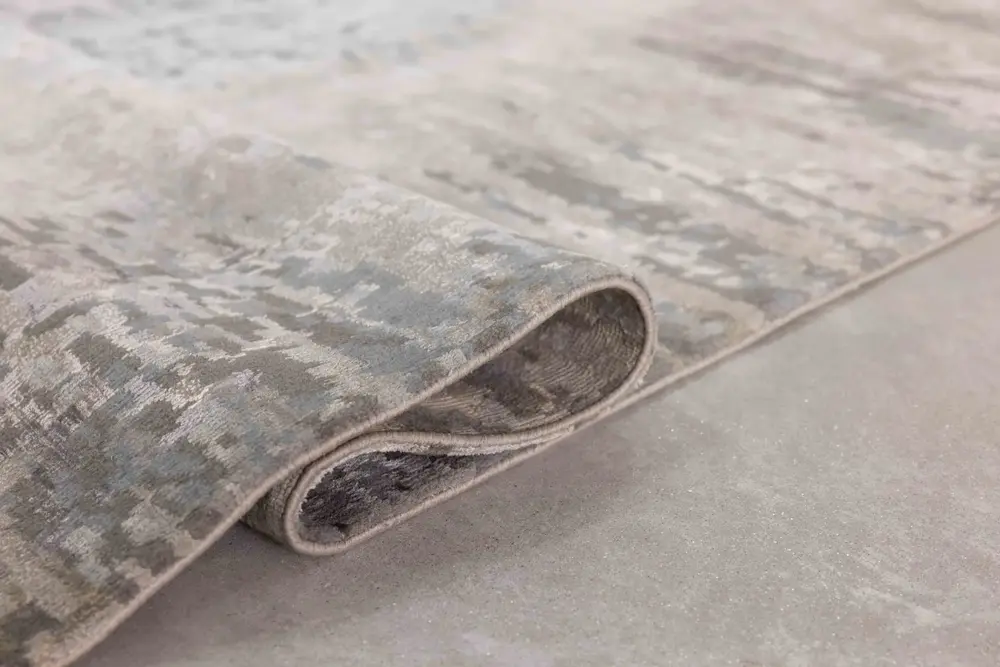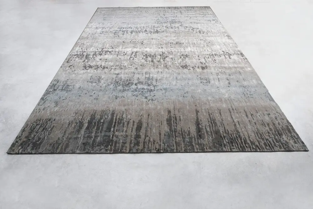 Presenting the “Phidim Design” rug collection, which has a contemporary abstract design with a blend of blue and gray hues evoking a picture or painting.